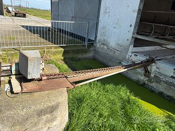 Raschiatore stalla automatico completo di impianto elettrico con memoria di ciclo, catena e motore. Sensore sforzo per urto animali. Catena a 1 euro al kg.
