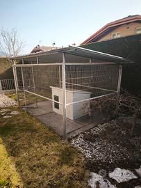 recinto cani costruzione artigianale molto robusto in ottimo stato misure utili interne 335 per 220 con relativa cuccia apribile, isolata e molto resistente.Adatto a cani di media e grande.