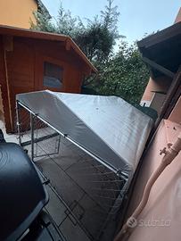 Vendo recinto coperto utilizzato come cuccia da giardino per il cane. Ora deposito coperto per tagliaerba e strumenti da giardino.