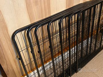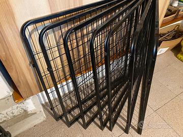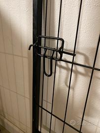 Recinto in ferro componibile composto da 8 griglie in ferro larghe 80 cm e alte 80 cm. Una dei pannelli grigliati è dotao di porta.