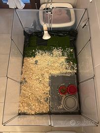 Recinto per animali con lampada riscaldante con termostato usato una settimana. 143 * 73* 46 modulabile.