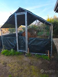 Struttura tubolare per recinzioni animali da cortile. Prodotto acquistato da rivenditore "il verde mondo". Semplice montaggio ad incastro e blocco con viti. Molto resistente. necessiterà di nuova rete in quanto allo smontaggio la vecchia rete perderà forma e risulterà scomodo riapplicarla. Telo di copertura impermeabile compreso, non è quello originale che si era presentato troppo leggero ma è un prodotto di estrema resistenza.