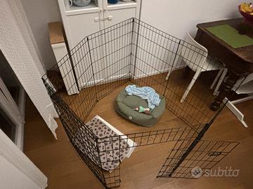 Recinto Pet Around per cuccioli e animali di piccoli dimensioni. Comodo e pratico per ingerno ed esterno, gia montato e pronto per l’utilizzo. Può essere montato in diverse forme (dimensioni in foto). Prodotto nuovo, mai utilizzato e con scatola orginale.