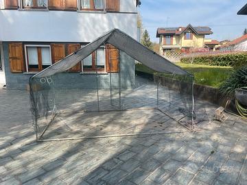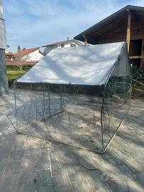 Usato 6 mesi, vendo con telo di copertira nuovo ancora impacchettato, misure 3x2metri con porta di accesso, sarebbe meglio venirlo a prendere montato per non danneggiare la rete. Completo di picchetti per fissarlo al terreno, pagato in Amazon 195€ ha solo un montante leggermente curvato ma che si raddrizza senza problemi si vede in foto, non inficia assolutamente la struttura, prezzo leggermente trattabile. Qualche fascetta andrebbe aggiunta o sostotuita.