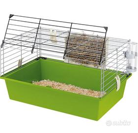 4) Gabbia per porcellini d'India, solida struttura in rete metallica verniciata con fondo in plastica, lato frontale della rete completamente sollevabile e dotato di ganci di chiusura di sicurezza, accessori inclusi: mangiatoia per fieno e beverino per porcellino d'India, facile da pulire grazie al fondo removibile e separabile dalla rete