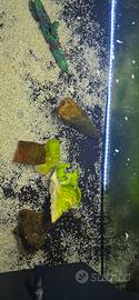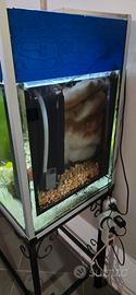 Rendo acquario come da foto rendo per cambio casa, completo di mangiatoia automatica, mobile in ferro, impianto LED per illuminazione con temporizzatore accensione e spegnimento automatico, riscaldatore per l'acqua essendo per ora tropicale, completo di pesci e accessori interni, capacità circa 300litri.