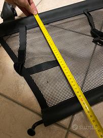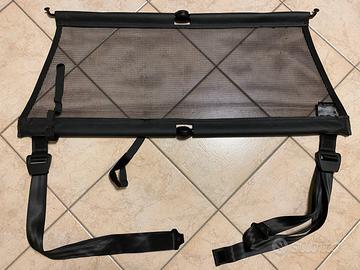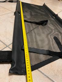 Vendo rete divisoria bagagliaio su misura, originale Mercedes cod. MB X253 TGN, per GLC dal 2015, nuova mai utilizzata. Protegge il vano passeggeri dal carico non fissato nel bagagliaio. In poliestere nero, robusto e antistrappo. Estrema facilità di montaggio e smontaggio, grazie alla pratica funzione di ribaltamento può essere riposta nella vettura. Può essere installata in due configurazioni: - dietro i sedili posteriori (separa il bagaglio e lascia liberi i 5 posti a sedere) - dietro i sedili anteriori (abbattendo gli schienali dei sedili posteriori separerà l’intero vano di carico dai 2 posti a sedere anteriori) Attenzione: verificare la presenza degli appositi ganci presenti sui lati del tetto necessari per fissare saldamente la rete.