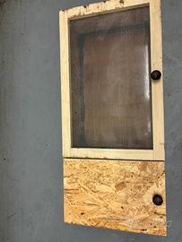 Rettilario in legno, realizzato da un protessionista e particolarmente indicato per il letargo in sicurezza di rettili e piccoli animali. Il rettilario ha le due ante apribili separatamente, sia per l'ispezione che per la pulizia; su una delle due ante è stata installata una retina "tipo zanzariera" necessaria oltre che per la corretta areazione all'interno del terrario, anche per evitare che altri animali o eventuali roditori, possano entrare e disturbare il letargo degli animali tenuti all'interno del rettilario. Nella teca c'è un divisorio interno, completamente removibile in quanto semplicemente avvitato. Misura del rettilario cm 100 x 45, altezza 20cm