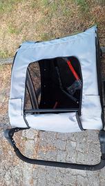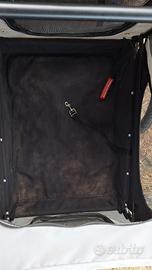 Vendo causa inutilizzo (usato solo per una vacanza) passeggino per cani trasformabile in rimorchio da collegare alla bicicletta grazie alla barra di traino e al telaio in acciaio. Copertura in tessuto Oxford per protegge l'animale dal sole e dalla pioggia. Il cane può entrare facilmente attraverso la porta anteriore o posteriore, apribili con cerniera, e può sporgere la testa dal tettuccio (anch'esso apribile). All'interno del passeggino è presente un gancio di sicurezza per il guinzaglio. Due ruote posteriori gonfiabili da 50 cm e due ruote anteriori girevoli in EVA garantiscono una guida fluida e sono adatte ai percorsi fuoristrada. La bandierina rossa e i catarifrangenti sulle ruote e sulla copertura assicurano la visibilità al rimorchio nel traffico e in condizioni di scarsa illuminazione. Dimensioni complessive: 140L x 72.5P x 108A cm (rimorchio), 103L x 73P x 108A cm (passeggino); Dimensioni interne: 79L x 55P x 63A cm. È adatto a cani di taglia media, con lunghezza inferiore a 54 cm e peso fino a 30 kg. NO SPEDIZIONE, SONO RITIRO A MANO.