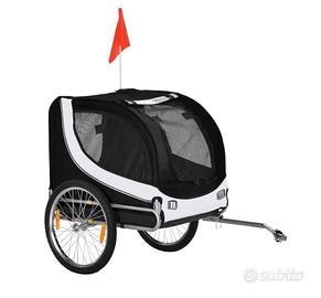 PawHut Rimorchio Bici per Cani Taglia Media con Finestre Laterali e Bandierina, Rimorchio per Bici in Acciaio e Tessuto Oxford, 130x73x90 cm, compreso di gancio per la bici.