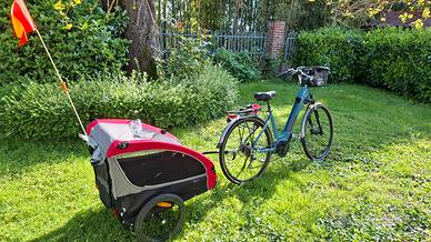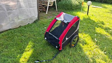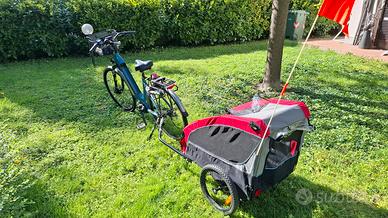 Rimorchio da bicicletta per cani, ruote posteriori removibili, facilmente richiudibile, agganci di sicurezza. Come nuovo