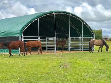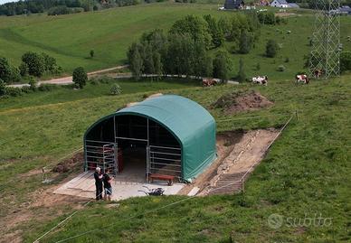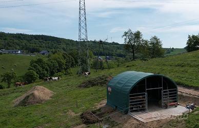 Sono in vendita in Polonia, Regno Unito, Europa e Paesi scandinavi. I rifugi per pascoli sono recinti di alta qualità per bovini, cavalli, capre, maiali e altri animali. I nostri prodotti offrono un'eccellente protezione da calore, vento, tempesta, pioggia e neve. I recinti sono ampi e possono essere utilizzati anche per conservare il mangime e altri oggetti necessari per l'allevamento. Il telaio del recinto è realizzato in tubi d'acciaio zincato a caldo con doppie traverse per resistere a condizioni climatiche estreme e il tessuto è in PVC di alta qualità del peso di 750 g. I recinti per animali domestici sono disponibili in diversi tipi di costruzione, tessuti, forme e dimensioni. La semplicità di costruzione per l'autoassemblaggio è un altro vantaggio dei nostri prodotti.