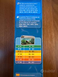 Riscaldatore Tetratec HT Tetratec HT50 w - 25-60l Termoriscaldatore ad alto rendimento, regolabile nei diversi livelli di potenza. La gamma comprende 7 modelli da 25 a 300 watt per soddisfare le esigenze di tutti gli acquari più. comuni, da 10 a 450 litri bottone regolatore per la preselezione della temperatura desiderata dell'acqua, regolabile da 19°.C a 31°.C in intervalli di 0,5°.C tappo a tenuta stagna, può. essere immerso completamente facile lettura della temperatura, che è. quindi facilmente regolabile luce di controllo per la fase di riscaldamento cavo di rete lungo (1,6 m) per facilitare l'installazione nell'acquario regolatore elettronico per un'affidabilità. e una sicurezza ottimali tubo di vetro di borosilicato extra spesso (2 mm), resistente a shock meccanici e termici elemento riscaldatore doppio in ceramica per una conduzione termica uniforme attraverso il vetro grande precisione: scala graduata regolabile che riporta anche i mezzi gradi fissaggio sicuro mediante due ventose