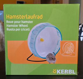 Vendo ruota per criceti/micro roditori marca Kerbl, diametro 20 cm. Usata pochissimo, praticamente nuova. Movimento molto fluido e super silenzioso, ideale anche per la notte. Struttura stabile con supporto incluso. Materiale resistente e facile da pulire. Dimensioni adatte a criceti nani e piccoli roditori