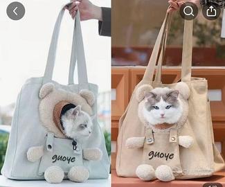 Con il foro per il viso del gattino e fettuccia con moschettone per tenerlo al sicuro all’interno, base rigida.comodo