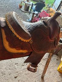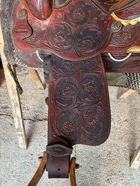 Disponibile sella americana Saddlesmith con incisioni flowers. La Sella è un pezzo unico, personalizzata e importata dalla Francia e perfetta in tutto. Seggio 15 arcione full quarter . Modello da ranch, roping e trail. Si trova a Cassino (fr) disponibile alla spedizione, è preferibile ritiro a mano. Altre info in privato o contatto telefonico,