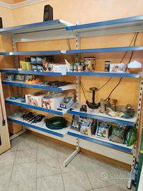 Scaffalatura per negozi molto robusta così composta ml Montanti n 10 cm h205x45 n 1 205x35 Ripiani n 5 cm 86x32, n 15 cm 100x42, n 8 cm 130x42 In tutto ml 7,75
