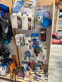 Vendo 6 scaffali con griglia porta oggetti , accessori per animali prezzo solo in blocco 250 euro