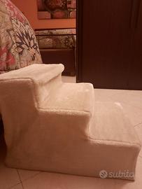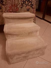Comoda scala per animali domestici anziani o con problemi articolari, in legno rivestito di moquette beige sfoderabile e lavabile, con una capacità di carico massima di 50 kg. Dimensioni cm. 35 ×45 ×30.