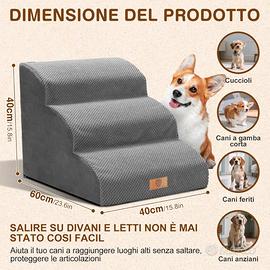 Vendo scaletta per cani a 3 gradini Masthome, acquistata pochi mesi fa su Amazon e usata pochissimo. Ideale per aiutare cani di piccola/media taglia, cuccioli o animali anziani/feriti a salire e scendere da letto o divano in totale sicurezza. Caratteristiche principali: 3 gradini stabili e morbidi in spugna Dimensioni prodotto : 60 x 40 x 40 cm; 2,73 kg Rivestimento rimovibile e lavabile Superficie antiscivolo Colore grigio Leggera ma resistente Perfetta per proteggere le articolazioni dell’animale Condizioni: Ottime, pari al nuovo, pulita e senza difetti. Motivo della vendita: Non più necessaria. Consegna: Ritiro a mano in zona. Per qualsiasi informazione o foto aggiuntive, non esitare a contattarmi!