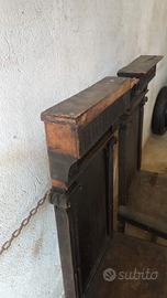 Queste sono sedie antiche, probabilmente di produzione artigianale, caratterizzate da uno schienale alto con elementi decorativi architettonici o classicheggianti, simili allo stile neogotico