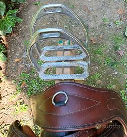 Vendo per inutilizzo sella all'inglese Pessoa, 17".Realizzata in cuoio inglese ingrassato di qualità pregiata, ultra morbido e resistente. Il seggio è molto confortevole.Alcuni segni di usura.Sottopancia inglese, Umbria in cuoio sagomato con elastici doppi e fibbie acciaio inox. Staffe e cinghie per le staffe 115 in cuoio.