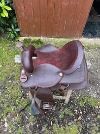 sella Western in vera pelle e tutto il necessario per sellare e cavalcare il tuo cavallo. Una cavezza e un petto abbinati completano il look.