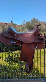 prezzo basso e ridetto rispetto alla media ,vendo sella west coast westcoast Pro Reiner,anni 2000 , misura 16 ,arcione quarter,ottimo cuoio ,ottimo stato come si vede dalle foto, lavorazione basket e floreal. molto comoda per lavoro in campo e passeggiate. sella nello specifico da reining. per ricerca reining team penning mountain trail working cow cowhorse