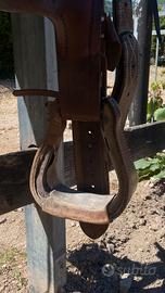 Vendo sella americana (western) in cuoio, in buone condizioni generali e ben conservata. Il cuoio è sano e la sella è comoda e stabile, adatta a passeggiate, lavoro leggero o utilizzo in maneggio. Presenta normali segni di utilizzo. Sul seggio sono presenti alcune piccole macchie scure di tipo estetico che non influiscono sull’uso. La sella mi è stata venduta già con una staffa fissata con dello scotch; l’ho sempre utilizzata in queste condizioni senza mai avere problemi, lo scotch non si è mai allentato e la staffa non si è mai spezzata. La sella viene venduta completa di sottopancia nuovo, cambiato da quasi un mese, quindi in perfette condizioni. La sella verrà accuratamente pulita e lucidata prima della vendita. Venduta per inutilizzo. Visionabile senza impegno. Prezzo trattabile. Disponibile a fornire ulteriori informazioni o fotografie su richiesta.