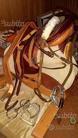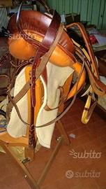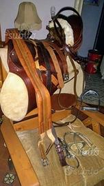 Sella argentina nuova mai usata completa di finimenti, staffe sottopancia sottosella e borsa in pelle