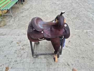 si propone in vendita bellissima sella western monta americana reining billy cook pro classic 16 pollici full quarter in ottime condizioni come da foto con staffe in legno. ideale anche per lavoro in piano, passeggiate, trekking, gimkana , lavoro con vitelli. per info 3357836837, visibile a gualtieri Reggio Emilia, prezzo comprensivo di spedizione direttamente a casa vostra.