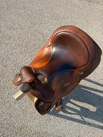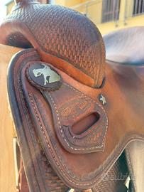Vendo sella da reining Tim McQuay in cuoio con carcassa in legno. Staffe in legno, dettagli in argento. Effettutato rinforzo nello staffile. Molto comoda. Cedo con la sella anche sottopancia Professional Choice e porta sella in nylon Lakota. Prezzo trattabile, per info e foto contattami in privato.