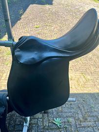 Vendo sella per cavalli arabi da completo (dressage) marca Theo Sommer modello El Arab , taglia 17, arcione medio, in buone condizioni. Modello creato appositamente per cavalli arabi e cavalli dalla schiena corta. Possibilità di spedire.