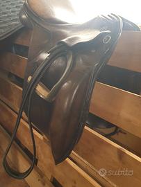 vendo a malincuore la mia sella da dressage, tenuta benissimo, sempre coperta , e pulita è un pò da ammorbidire, la sella non presenta difetti, comoda misura 17.