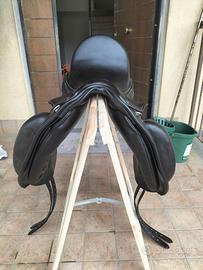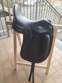 Vendo sella da dressage modello Chester nera con cuciture bianche, un anno di vita.