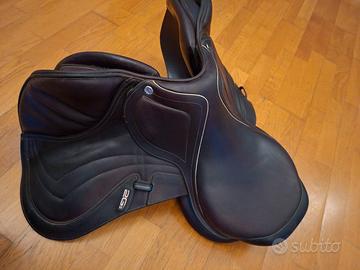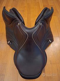 Sella da salto CWD 2Gs marrone usata con inserti azzurri. Misura 17".