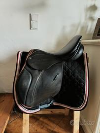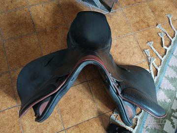 Sella Stubben usata da salto, anche comoda per fare le passeggiate. Con un coprisella di Stubben. Modello: Juventus Seggio: 17" (43 cm - misurato da un chiodo del pomo dritto verso il centro della paletta!!!) Arcione: 29 colore: nera Ritiro a mano in zona MS. Spedizione in Italia disponibile (+20 euro)