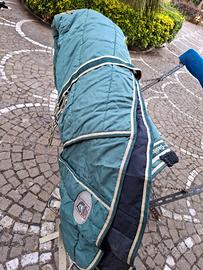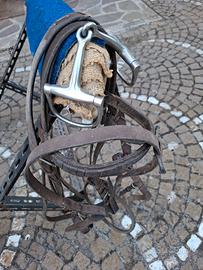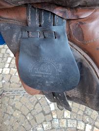 Sella monta inglese Antica selleria Pugliese + 2 staffili in cuoio marrone nuovi + 2 staffe acciaio inox complete di pedane in gomma + 2 briglie cuoio complete di testiere, redini e filetti uno in acciaio e uno in silicone + coperta trapunta Tattini Daslo verde militare taglia 70" - 180CMS