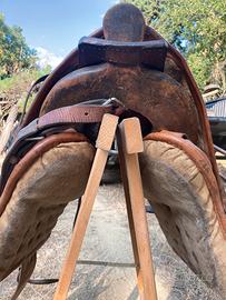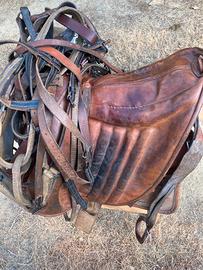 Sella bardella originale maremmana acquistata da aritigiano di Grosseto usata pochisso come si vede da foto é completa di pettorale sottocoda testiera e briglia volendo anche morso tutto originale