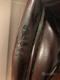 Vendo sella Equipe Grand Prix 17”. Tenuta bene, con i riscontri cambiati poco fa; ha una cucitura sul lato sinistro, ma è poco visibile (ne ho fatto la foto).