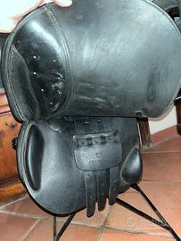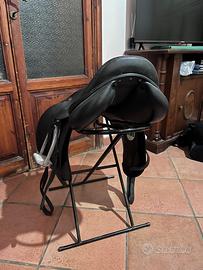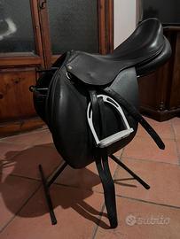 Vendo sella inglese da salto, taglia 18. Marca Equestro, supreme evolution. Colore nero. Sella del 2023, usata due anni. Regolarmente pulita e saponata dopo ogni utilizzo. Vendo conpleta di porta sella, staffe (hkm) e staffili