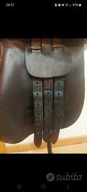 sella in cuoio marrone scuro marca selleria pugliese da monta inglese, dressage, lavoro in piano, passeggiate. seggio 18 arcione medio. comoda e pratica. qualità made in Italy. Presenta qualche segno di usura ma è complessivamente in buono stato. ritiro a mano o spedizione disponibile