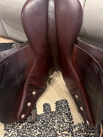 Sella in cuoio color testa di moro misura 17, marca Barnsby and Son. Vendo completa di staffe, senza staffili. Disponibilità di prova nelle zone limitrofe