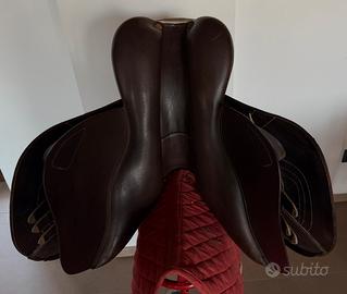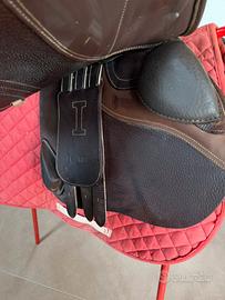 Vendo sella ikonic, modello Evolution finiture beige da salto ostacoli. Misura 17 con quartiere avanzato, adatta a persone alte o con gambe lunghe. color Havana . Possibilità di modifica arcione e imbottiture a seconda delle necessità del proprio cavallo. Velcro block per ginocchia rimovibile. Prezzo nuova 2500€ . Usata meno di 20 volte, come nuova. Vendo con coprisella originale. Vendo per inutilizzo. Vendo senza staffili. Possibilità di spedizione o consegna a mano su torino e provincia Valuto scambio da dressage di pari valore.