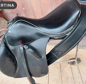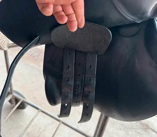 Vendo sella tg 17.5 , completa di staffili e staffe , per passaggio alla sella americana . Comprende anche copri sella originale . Usata pochissimo , pari al nuovo come da foto.