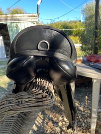 Vendo sella da monta ingleese in ottime condizioni, usata pochissimo, 17 pollici con staffe e staffili compresi, anche il sottopancia, misura 150 solo su richiesta. Vendo per poco utilizzo.