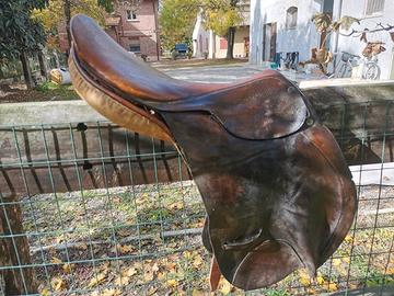 Vendo sella inglese da salto, artiginale della selleria Ulisse Masetti, misura grande 18 o maggiore. Buono stato di conservazione benchè sia stata molto usata.
