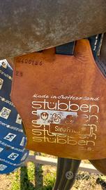 Vendo sella monta inglese usata, marca Stubben. Con sottosella originale, staffe originali e anche altre 2 staffe originali, copri sella originale Stübben.