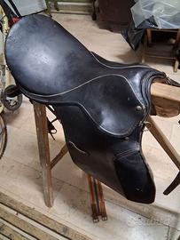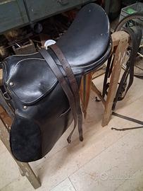 Sella da monta all'inglese non piu usata ma conservata bene ,con sottosella,staffe e morso