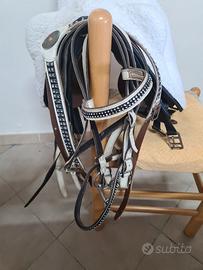 come da titolo vendo sella per pony modello australiana completa di staffe, staffili, sotto pancia,agnellino ,testierina con filetto e pettorale.